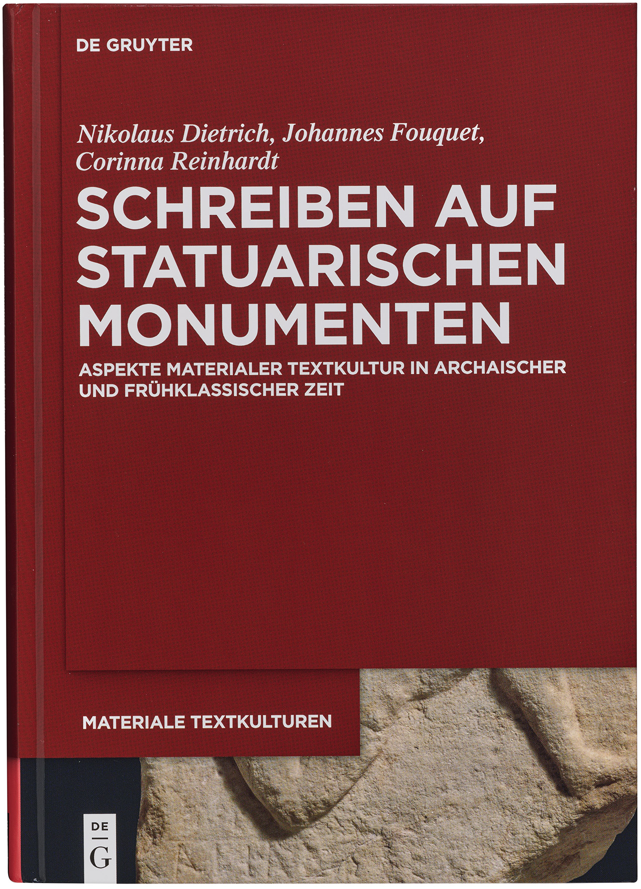 - zusammen mit Nikolaus Dietrich [Heidelberg] und Johannes Fouquet [Heidelberg] Schreiben auf statuarischen Monumenten. Aspekte materialer Textkultur in archaischer und frühklassischer Zeit, Materiale Textkulturen 29 (De Gruyter, Berlin/Boston 2020), Druckpublikation und open access ebook (peer review), darin: C. Reinhardt, Schrift am Grabmal. Zur Materialität der Inschriften an archaischen Grabmälern aus Athen und Attika, S. 31–102 sowie zusammen mit N. Dietrich und J. Fouquet: Vorwort V-VI; Kontrapunkte. Perspektivierungen ex post, S. 195-210; Schluss S. 211–214)