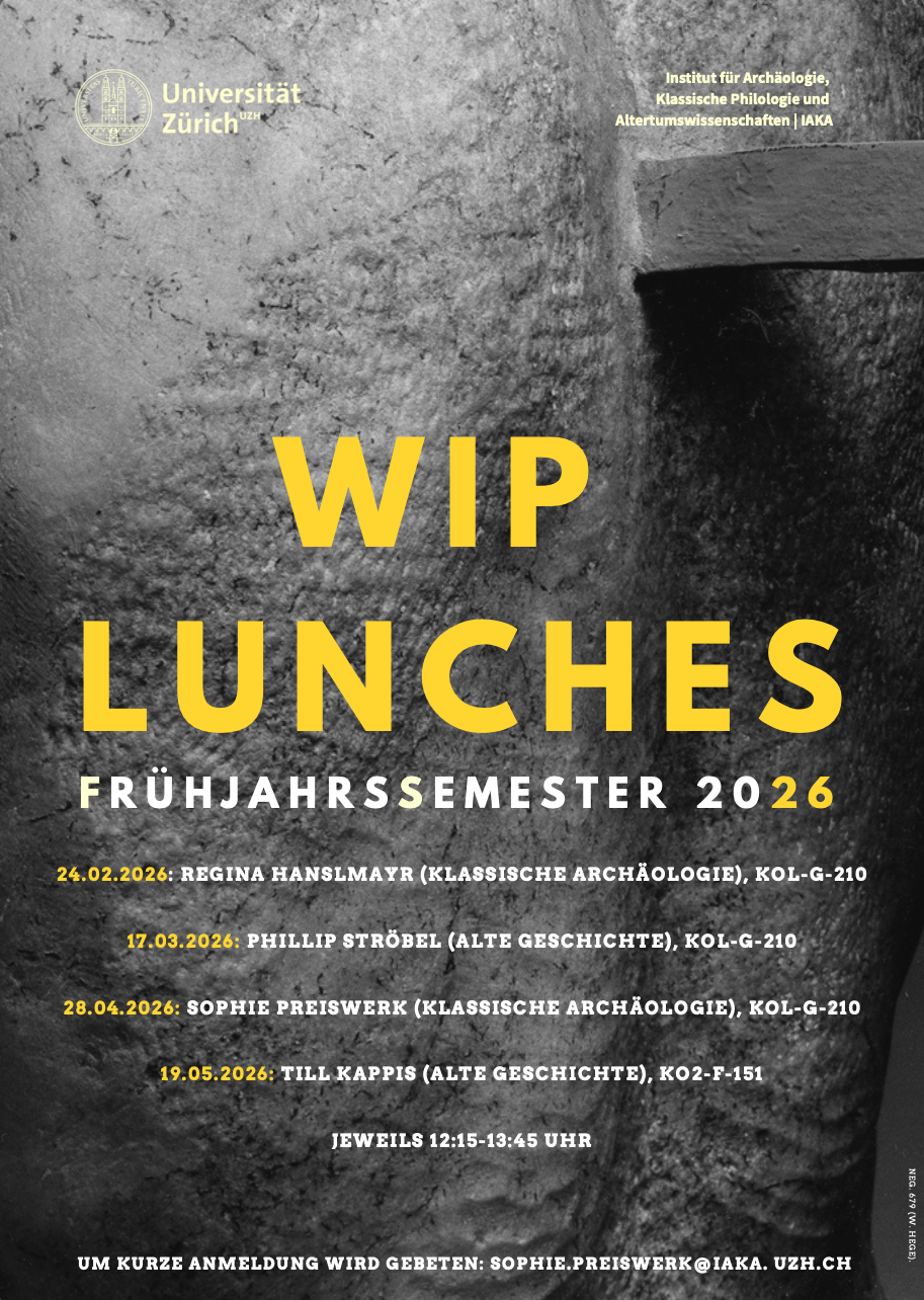 Zielgruppe der Work in Progress Lunches, die jedes Semester am Institut für Archäologie stattfinden, sind fortgeschrittene Masterstudierende und der wissenschaftliche Nachwuchs, also Doktorierende und Post-Docs. Beim gemeinsamen Mittagessen sollen Ideen und Projekte jeden Stadiums vorgestellt, diskutiert und entwickelt werden. Egal, ob es sich um Dissertationskapitel, Abstracts oder Konferenzbeiträge handelt: Jeder "Werkstattbericht" ist willkommen und kann in einem lockeren und offenen Dialog geteilt werden.